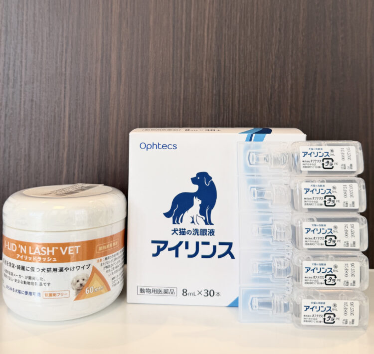 あいづま動物病院では洗眼液や目の周りのケア用品を取り扱っております。