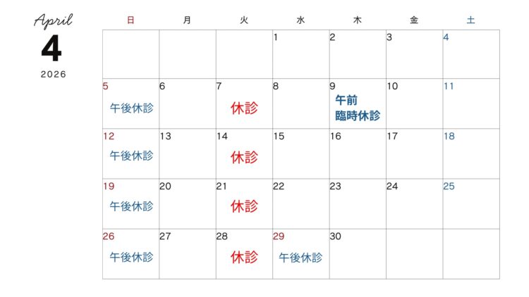 4月9日(木) 午前臨時休診いたします。(午後は通常通り)