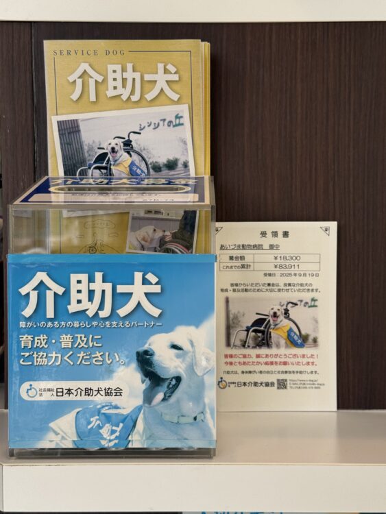 あいづま動物病院では、介助犬とそのパートナーが安心して暮らせる社会を目指し、その活動を支えたいと考えています。介助犬を見かけたら、温かい目で見守り、必要な場面では優しくサポートをお願いいたします。