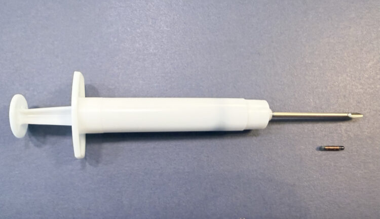 獣医師(もしくは獣医師の指示の下で愛玩動物看護師)が首の後ろの皮下に専用の注射器で挿入します。通常の注射と同程度の痛みで麻酔は不要です。犬は生後2週間ごろから、猫は生後4週間ごろから可能です。