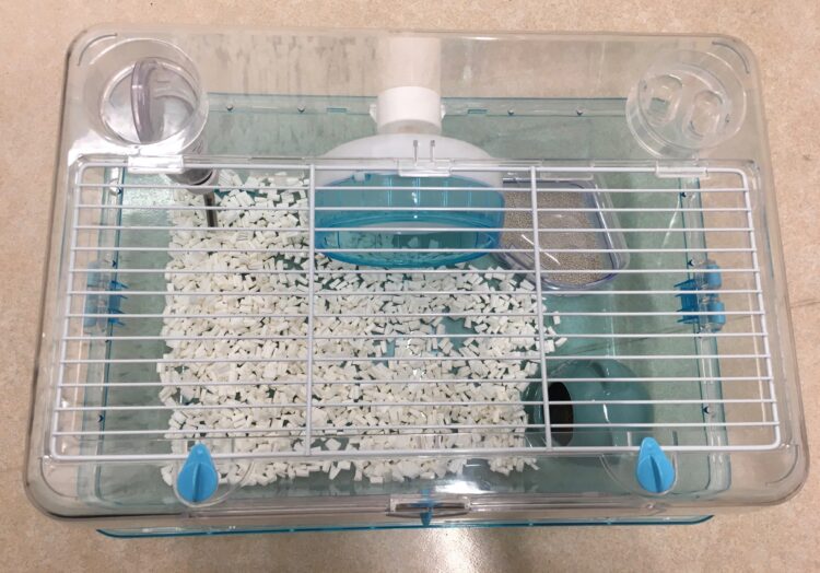 丸洗いした後も、掃除前に使用していた床材を少し混ぜて戻してあげると、自分の臭いが残っていてハムスターがパニックになりにくいです。