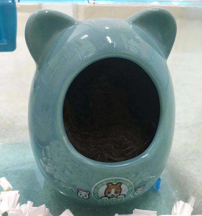 ハムスターは基本的に臆病で、暗くて狭い場所を好む生き物です。木製や陶器製の巣箱を設置して、中で休めるようにしてあげましょう。