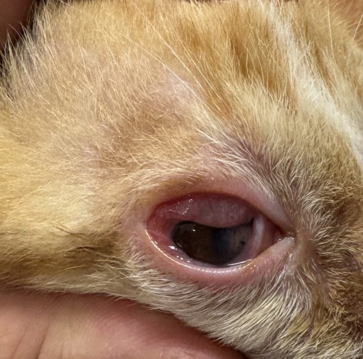 猫伝染性鼻気管炎による結膜の充血及び浮腫